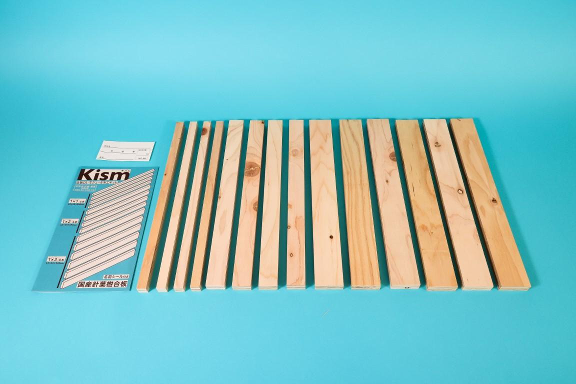 合板の板厚12㎜を1(ワン)として板幅を整数倍の2(ツー)、3(スリー)・・・とした短冊状に材料取りした1×1(ワンバイワン)、1×2、1×3・・・のような寸法規格が、製品の呼び名と材料寸法が一致する規格材Dimension Lumberとなり、容易に部品交換も可能な構成部品(module)となります。また、DL材は断面形状により材料曲げ強度が確定でき、強度を考えた設計学習の教材となります。