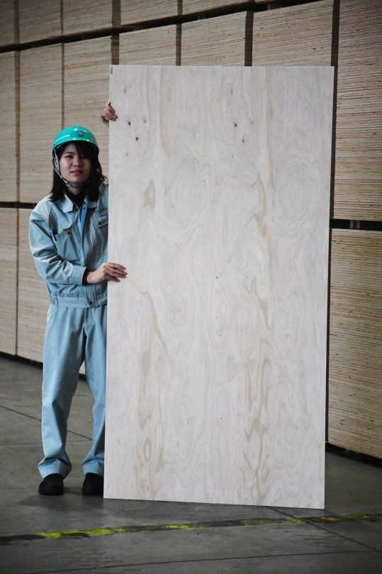 合板は「910 mm(三尺)× 1820mm(六尺)」の長方形で,厚さが均一な規格化された材料です。一般的には「サブロク板」と呼ばれています。我が国で使用されている最も代表的な木質材料の「規格材(ディメンジョンランバー:Dimension Lumber)」です。