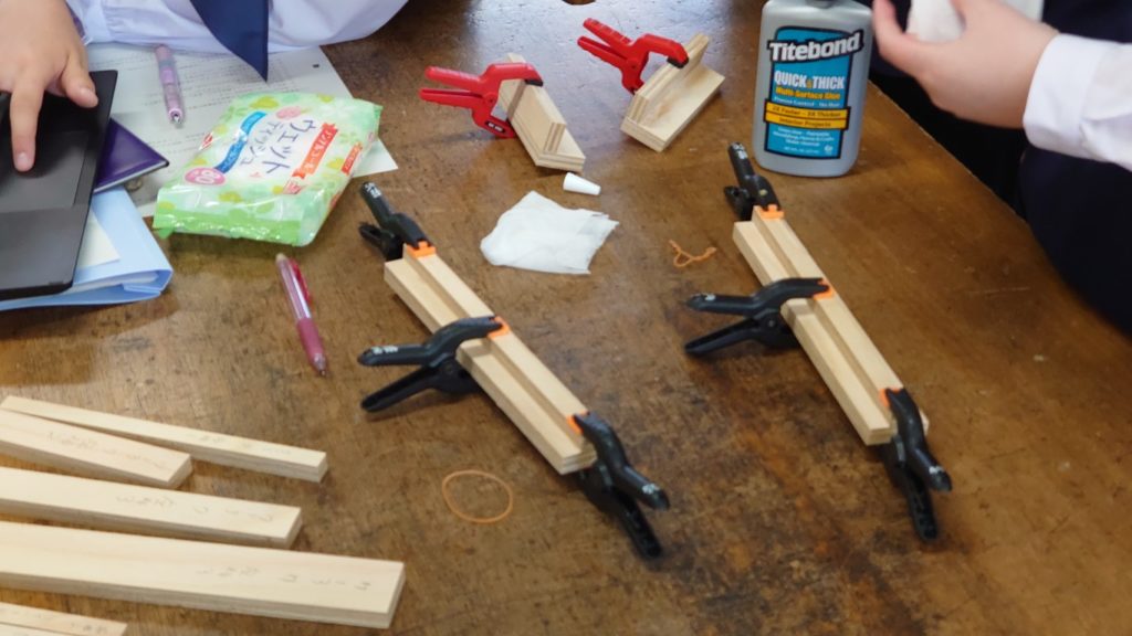 【授業レポート:第2時】部材の確認と接着接合(前脚L材と後脚T材)【島根大学附属】
