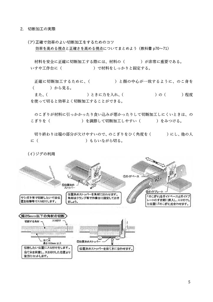 ワークシートの後半にはソーガイドを使った木材切断の手順が記載してありますので、それに従って作業を進めます。