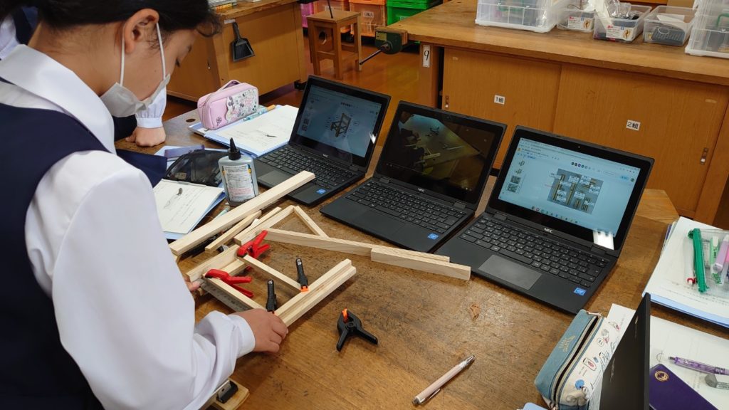 【授業レポート:第4時】切断の仕組み調べと切断(ソーガイド使用)と接着接合(前後に繋ぐ)【島根大学附属】