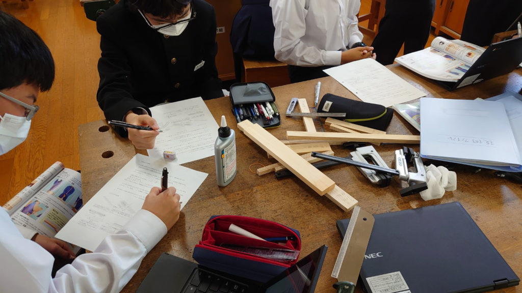 といった意見が出ました。生徒たちからも組み立て時の工夫のアイデアで出てくると良いですね。 精度よく組立てるのには工夫が必要といった体験が、以降の製作(組立て)に役立つと思います。