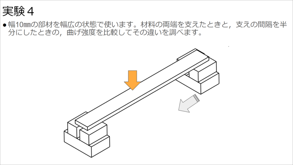 つづいて、今度は支えの位置の変化による強度の違いについて実験します。