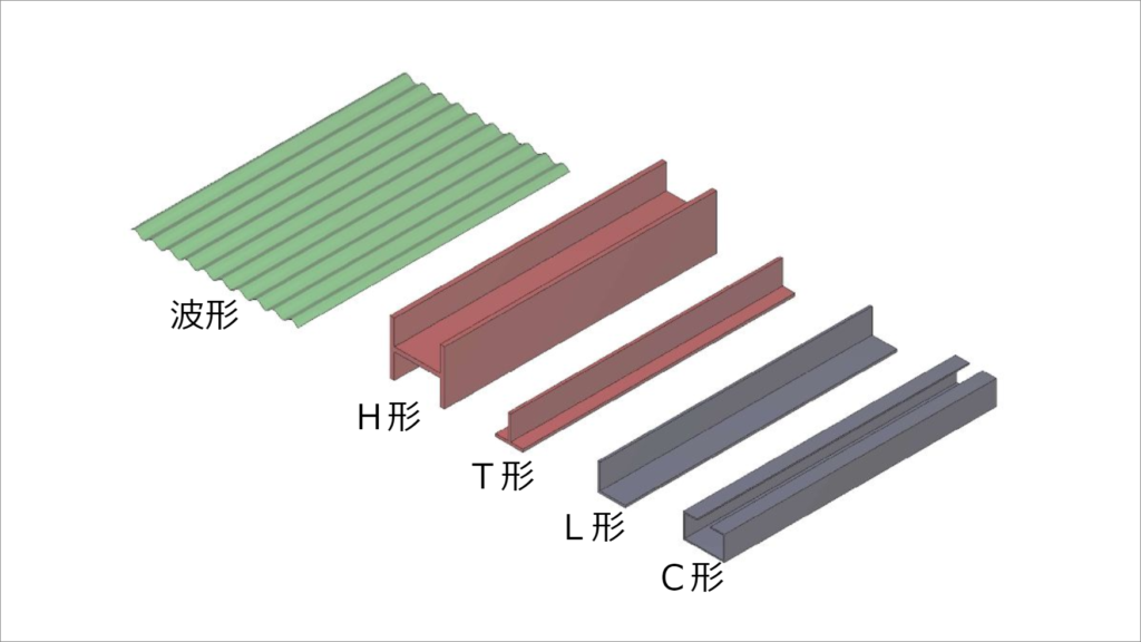 などの意見がでました。身近な場所(例えば、教室から見える外階段にはC型鋼が使われている)での利用箇所なども示します。波型などは、屋根だけではなく、もっと身近な段ボールにも利用されていますね。