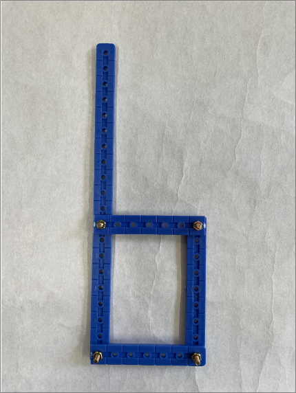 各グループに以下のような実験セットを配布します。プラスチックの棒形状をネジ、ナットで結合したモデルを使います。