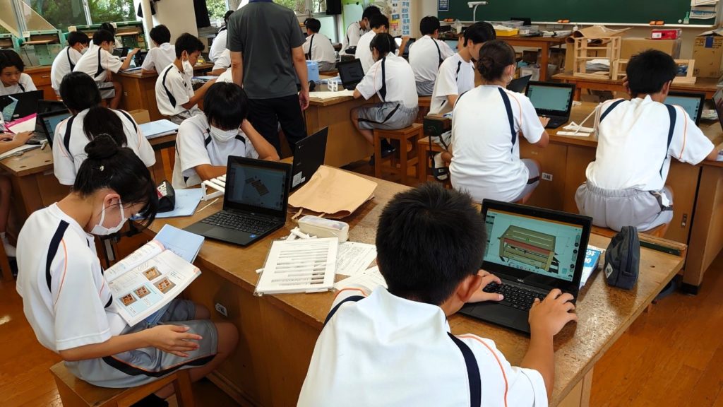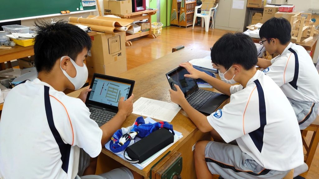 今回は夏休み明け2回目の授業となります。 前回は夏休みの課題として作成してきたスチレンボードによる模型を基に、改善点がないかどうかをグループワークで洗い出しました。今回の授業では洗い出した改善点を基に設計の第2案を作成していきます。