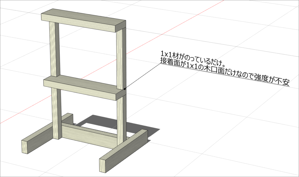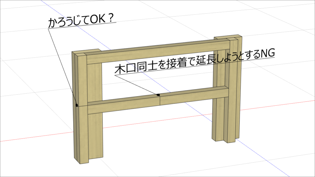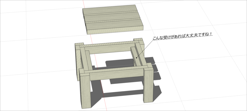 後から間に材料を挟むような構造(受けとなる部材が無い)