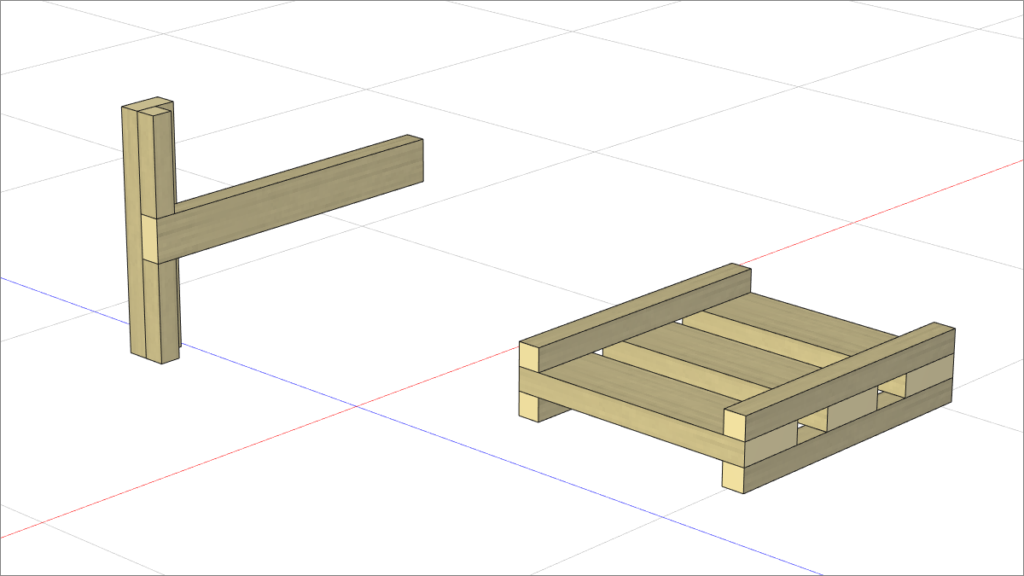 先生のチェックでは、主に組み立ての順番などを確認します。組み立ての順番を生徒に尋ねる際は、プレ体験したKismトライアルでの組み立て手順を思い出してもらいます。 Kismトライアルの組み立てでは、まずL材と呼ばれる部品を作った後、左右の脚部分を作りました。これを枠と呼んでいます。枠が出来たら、その間を繋ぐように組立てましたね。 同じような手順で組み立てができる設計となっているか考えてもらいます。