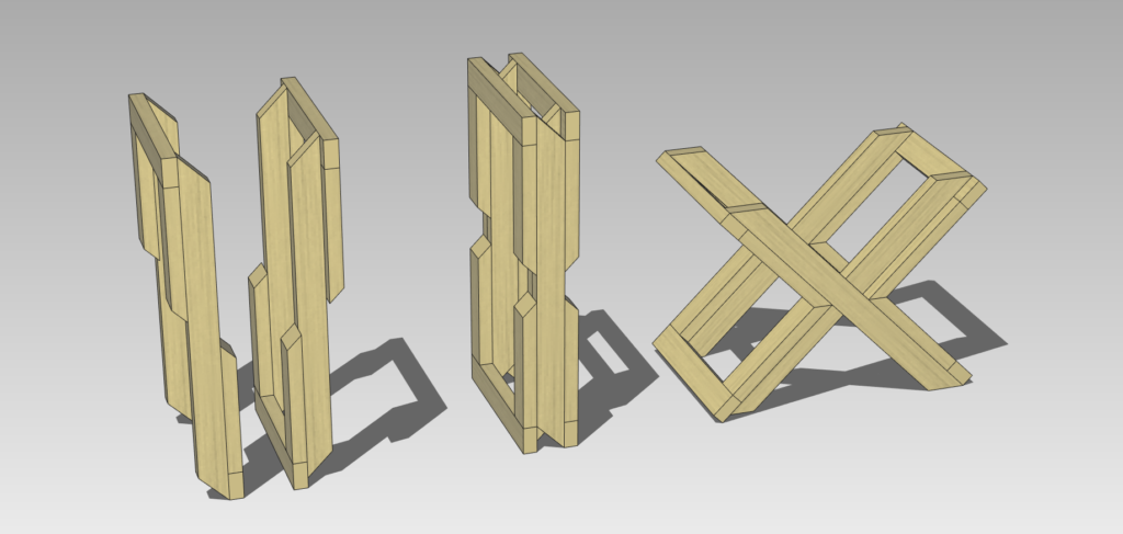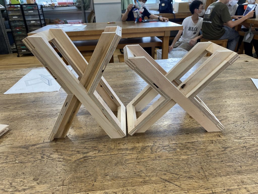 脚組みの部分は合板DL、座板は集成材で、と、ハイブリッドにすることも可能ですね。けがき、のこ引き、材料加工もやりつつ、合板DLもやりつつ・・・というのも一つの手法かもしれません。