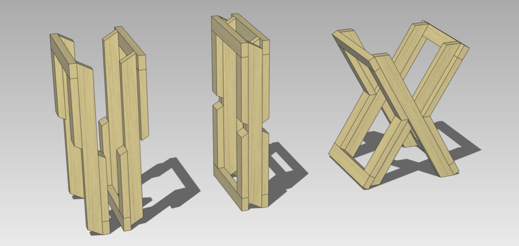 金具を使わずに折りたためる椅子の作例です。