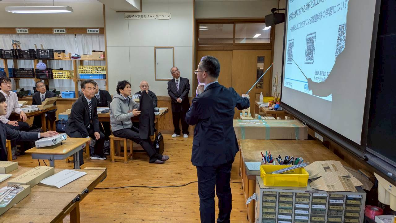 2025年10月31日(金)、徳島県立城ノ内中等教育学校にて、令和7年度徳島県中学校技術・家庭科教育研究大会の教材研修会を実施しました。徳島県中学校技術・家庭科研究会の主催、当協会の共催で、徳島県内の技術分野担当47名の先生方が参加されました。
