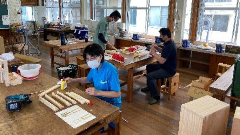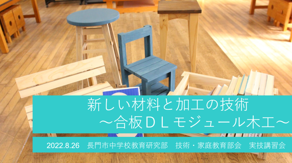 2022年8月26日に令和4年度 長門市中学校 教育研究部 技術・家庭科部会 実技講習会で合板DL・モジュール木工の研修を行いました。