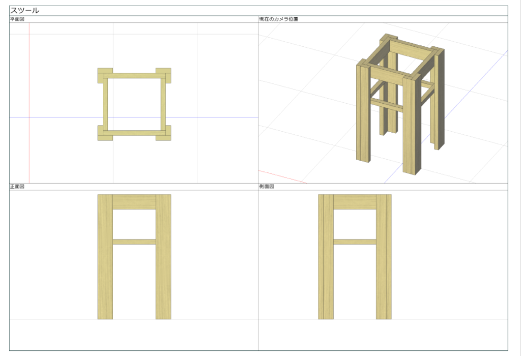 研修会で配布された図面(PDF)を公開します。スツールの図面は合板DL材の規格データを用いて「caDIY3D-X」を使って作図しました。