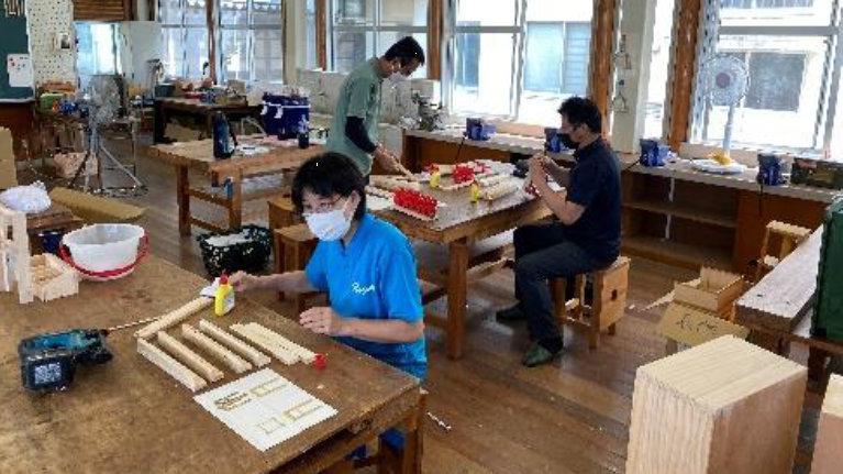 令和4年度 長門市中学校 教育研究部 技術・家庭科部会 実技講習会で合板DL・モジュール木工の研修を行いました。