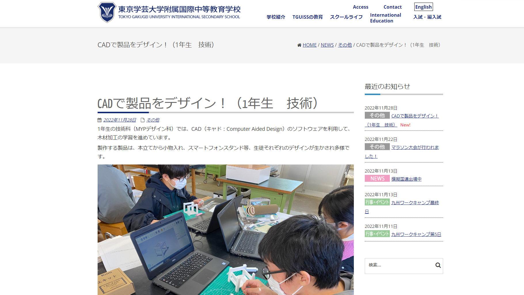 東京学芸大学附属国際中等教育学校での授業の様子が同校のHPに掲載されています。 生徒ひとりひとりが「インダストリアルデザイナー」