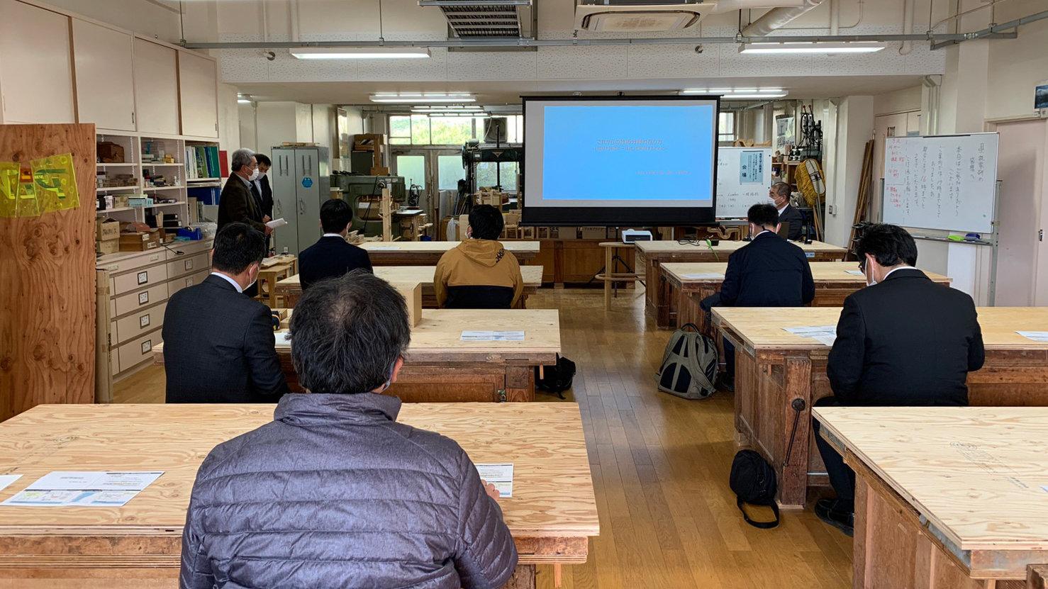 本協会のアドバイザー上野 先生を講師に招き、島根大学木工教室において島根県技術・家庭科研究会との共催で教員研修会を実施しました。