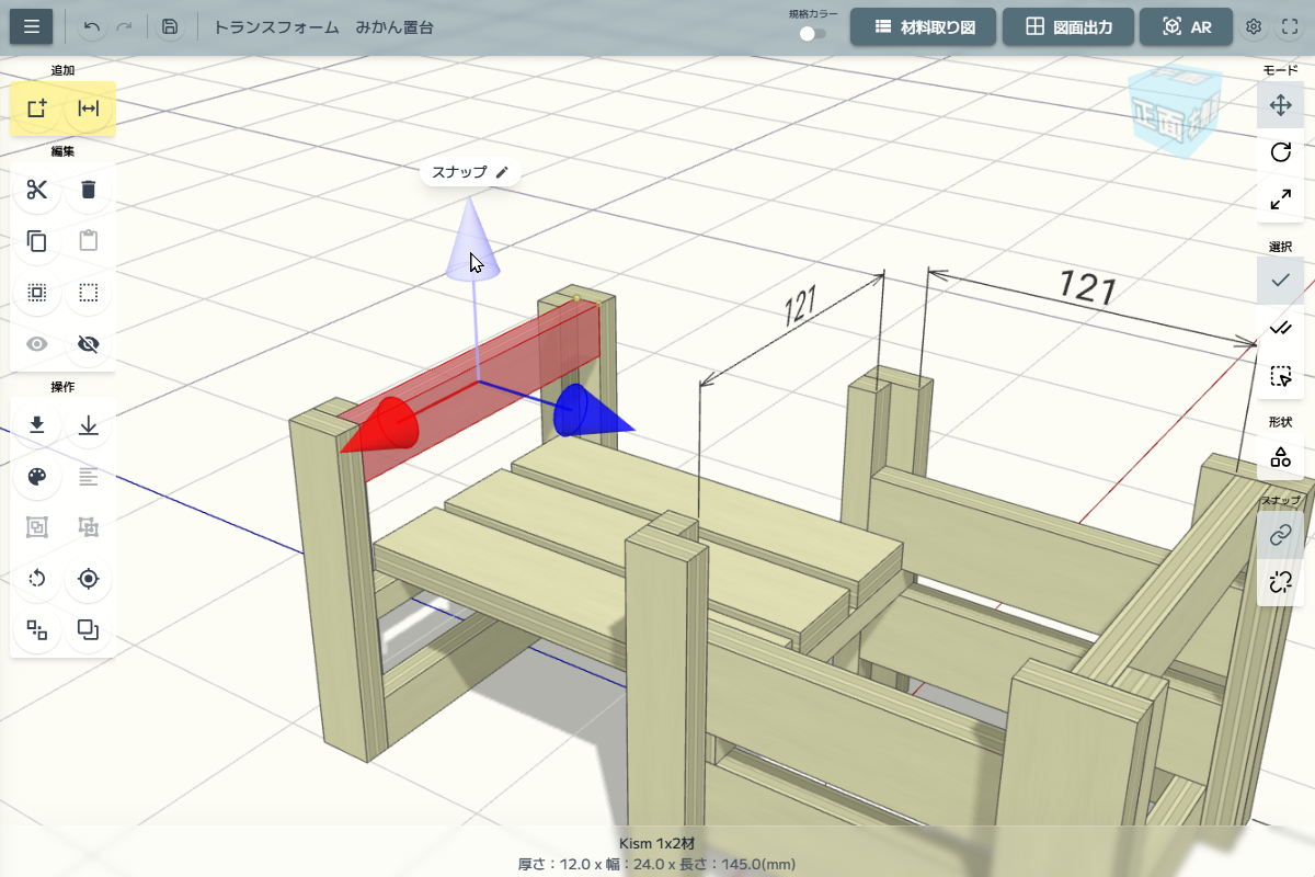 積み木のようにカンタンに設計・シミュレーションができる、教育機関向けの3D設計Webアプリです。マウス操作だけで合板DL材の設計図が作れ、木取り図や第三角法による正投影図の出力にも対応しています。PCやタブレットのブラウザから利用でき、30日間の無料トライアルも用意されています。