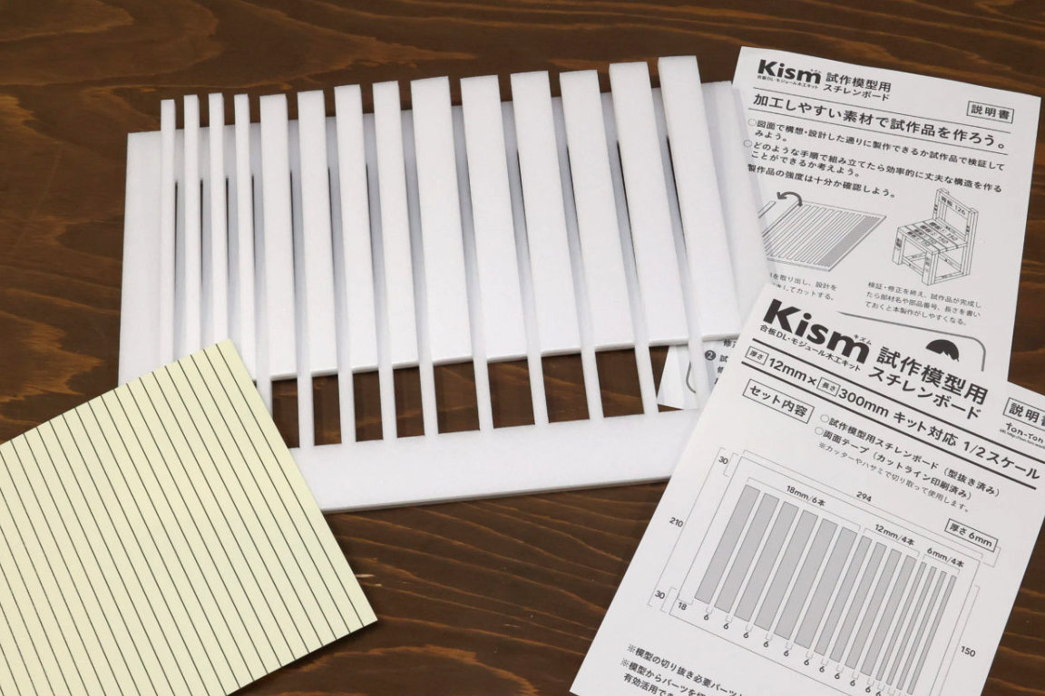 カッターで簡単に切断できる試作模型用のスチレンボードです。合板DLモジュールキットの1/2スケールの試作を作ることができます。強度、構造の検討が可視化でき、試行錯誤に最適です。