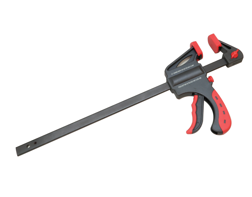 接着剤を塗布したら、すぐにクランプで圧着します。圧着が不十分だと接着強度が大きく低下するため、クランプでの圧着は絶対に省略しないでください。