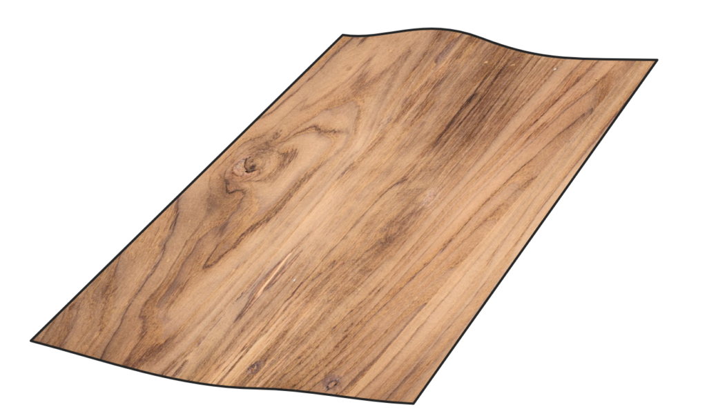 合板は木材①の木目方向と木材②の木目方向を重ね合わせた状態になっているため、曲げ強さは両者の中間となります。木目方向による強さの差を解消する ―― これが合板の最大の特長です。