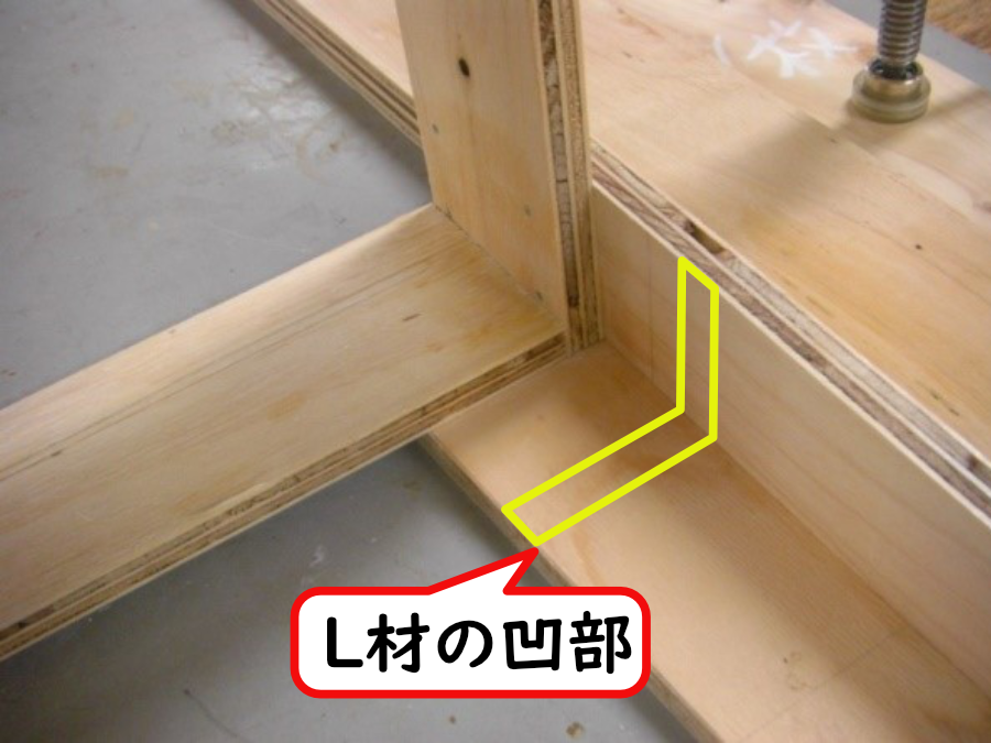 - 強固な接着接合 ― L材凹部と合板DL材先端の「圧着・突き付け接ぎ」による簡単で丈夫な接合