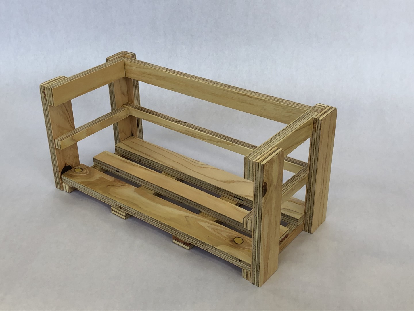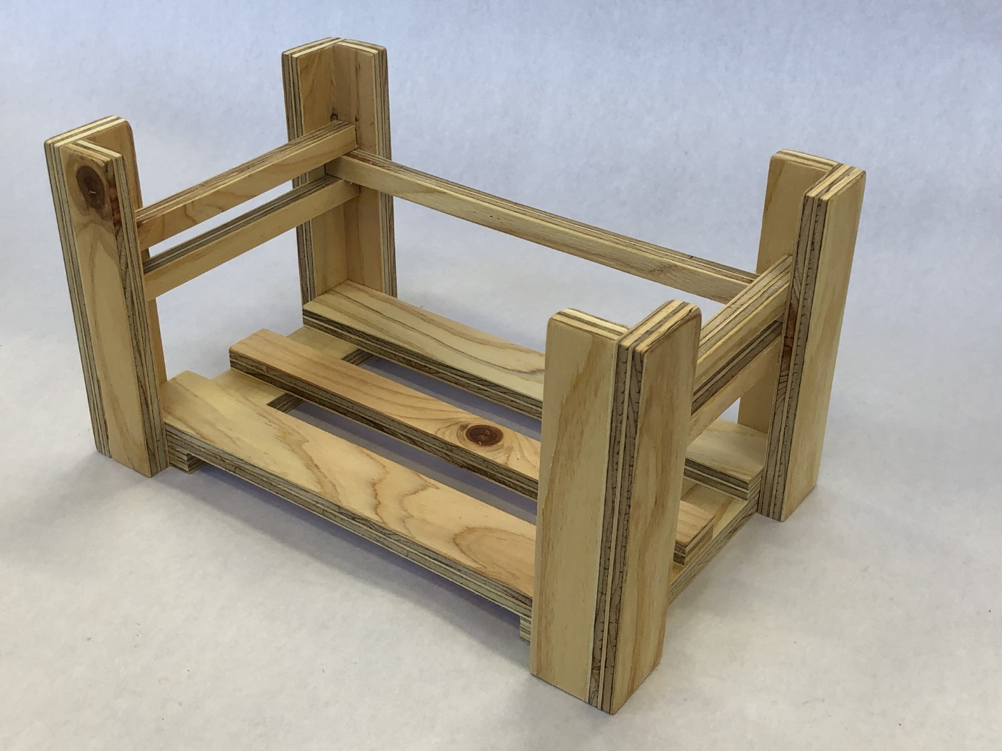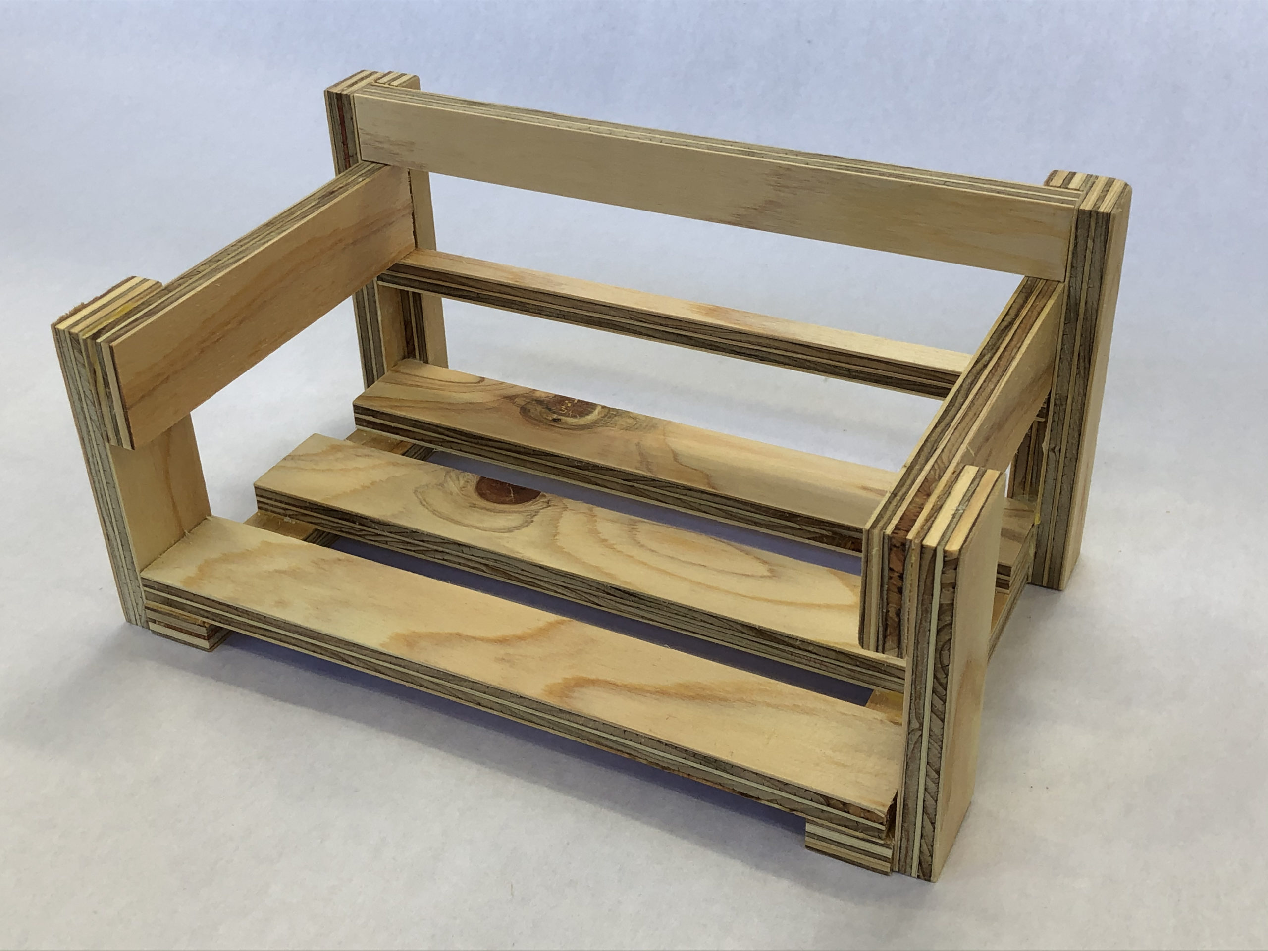 島根大学附属中学校での作品例です。合板DL・モジュール木工キットと3D CADソフト(caDIY3D)を組み合わせ、生徒が自ら設計・製作を行いました。